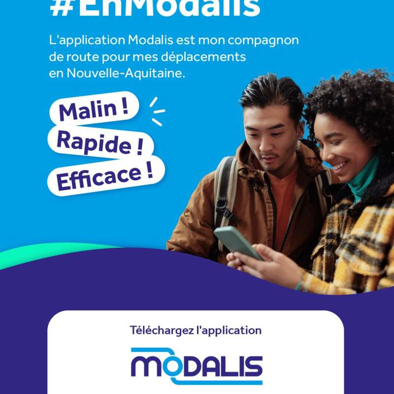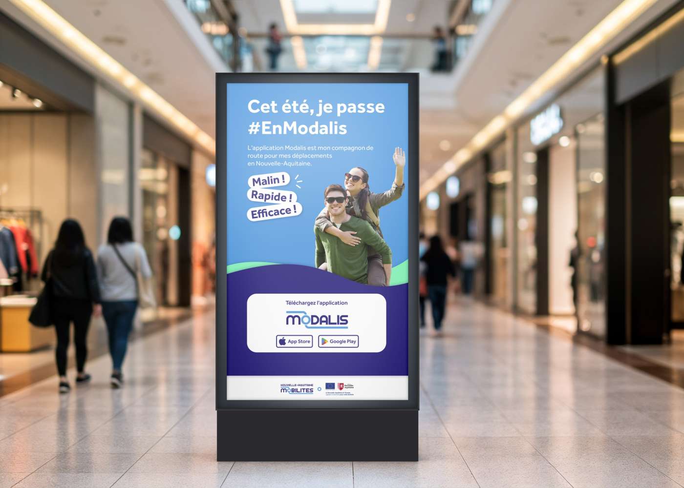 En 2025, .Repliq a accompagné Nouvelle-Aquitaine Mobilités dans la promotion de son application de mobilité Modalis auprès d'une cible jeune. Ainis, nous avons mis en place la création d’une campagne publicitaire régionale, déclinée sur différents supports, pour rendre l’application visible, attractive et facilement compréhensible par les usagers.